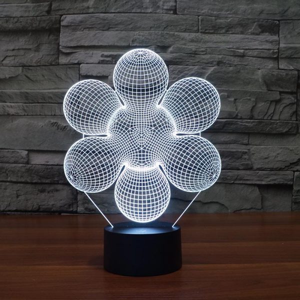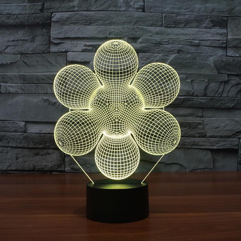 This Abstract Flower 3D LED Illusion Night Light Lamp makes an excellent gift for kids, friends, and family (Including yourself)! It can be used as a cool night light for kids, or a unique decor for your bedroom, living room, or office. With the use of a laser engraved acrylic piece and bright LED lights, a stunning optical 3D illusion is created right before your eyes!