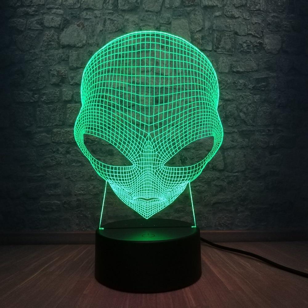 This Alien Head 3D LED Illusion Night Light Lamp makes an excellent gift for kids, friends, and family (Including yourself)! It can be used as a cool night light for kids, or a unique decor for your bedroom, living room, or office. With the use of a laser engraved acrylic piece and bright LED lights, a stunning optical 3D illusion is created right before your eyes!
