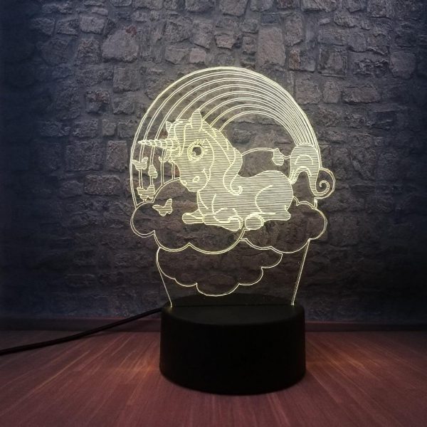This Baby Unicorn 3D LED Illusion Night Light Lamp makes an excellent gift for kids, friends, and family (Including yourself)! It can be used as a cool night light for kids, or a unique decor for your bedroom, living room, or office. With the use of a laser engraved acrylic piece and bright LED lights, a stunning optical 3D illusion is created right before your eyes!