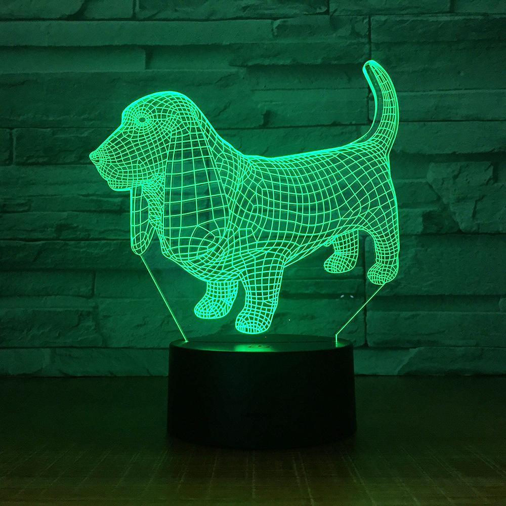 This Basset Hound Dog 3D LED Illusion Night Light Lamp makes an excellent gift for kids, friends, and family (Including yourself)! It can be used as a cool night light for kids, or a unique decor for your bedroom, living room, or office. With the use of a laser engraved acrylic piece and bright LED lights, a stunning optical 3D illusion is created right before your eyes!