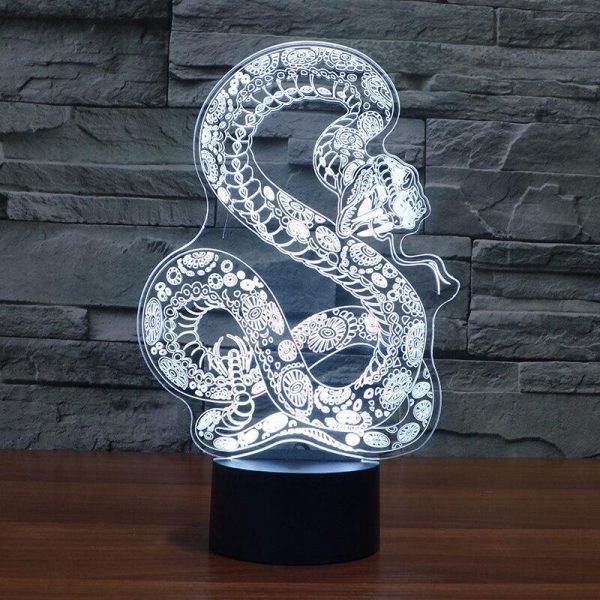 This Boa Snake 3D LED Illusion Night Light Lamp makes an excellent gift for kids, friends, and family (Including yourself)! It can be used as a cool night light for kids, or a unique decor for your bedroom, living room, or office. With the use of a laser engraved acrylic piece and bright LED lights, a stunning optical 3D illusion is created right before your eyes!