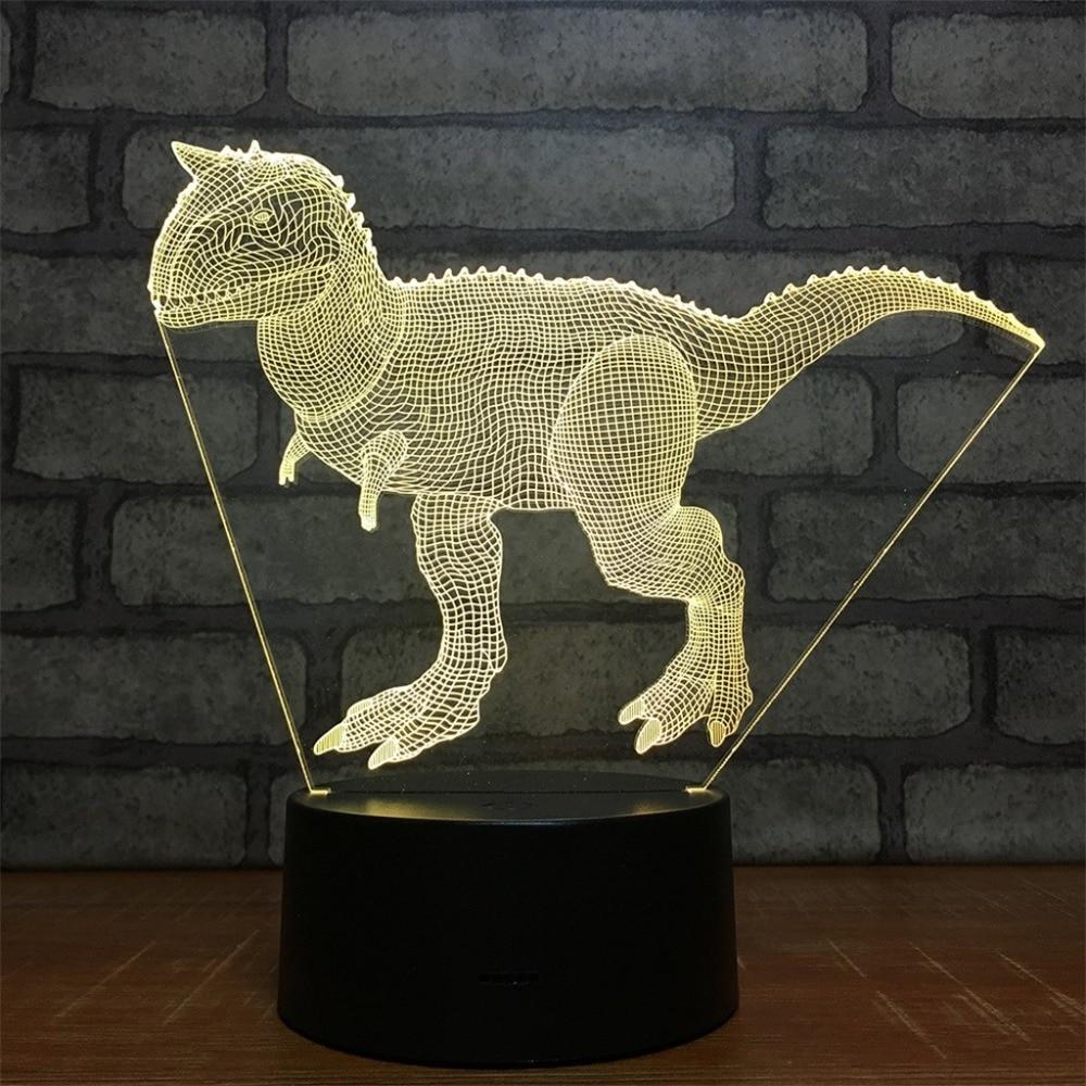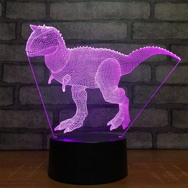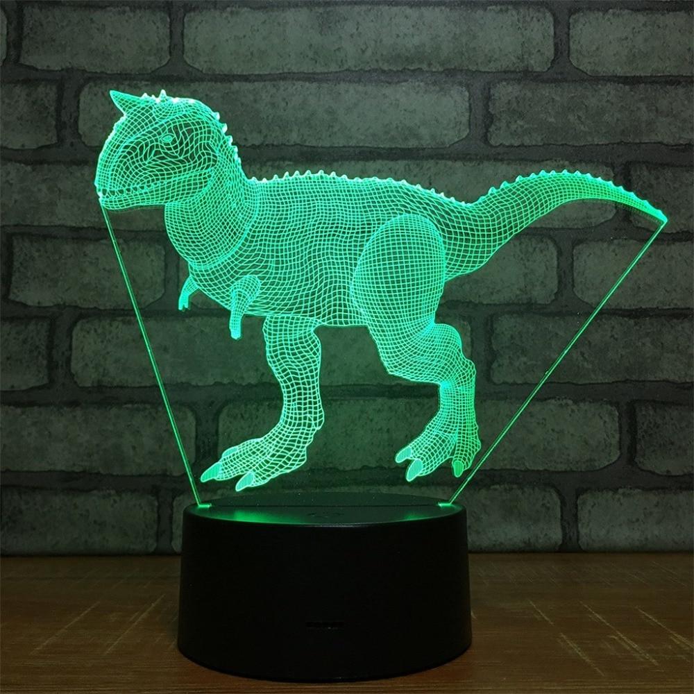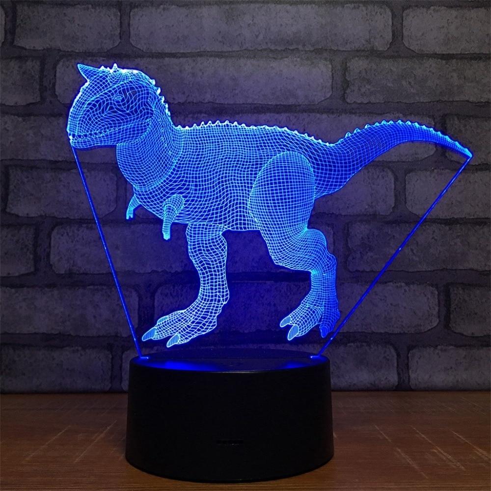 This Carnotaurus Dinosaur 3D LED Illusion Night Light Lamp makes an excellent gift for kids, friends, and family (Including yourself)! It can be used as a cool night light for kids, or a unique decor for your bedroom, living room, or office. With the use of a laser engraved acrylic piece and bright LED lights, a stunning optical 3D illusion is created right before your eyes!