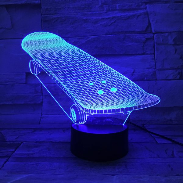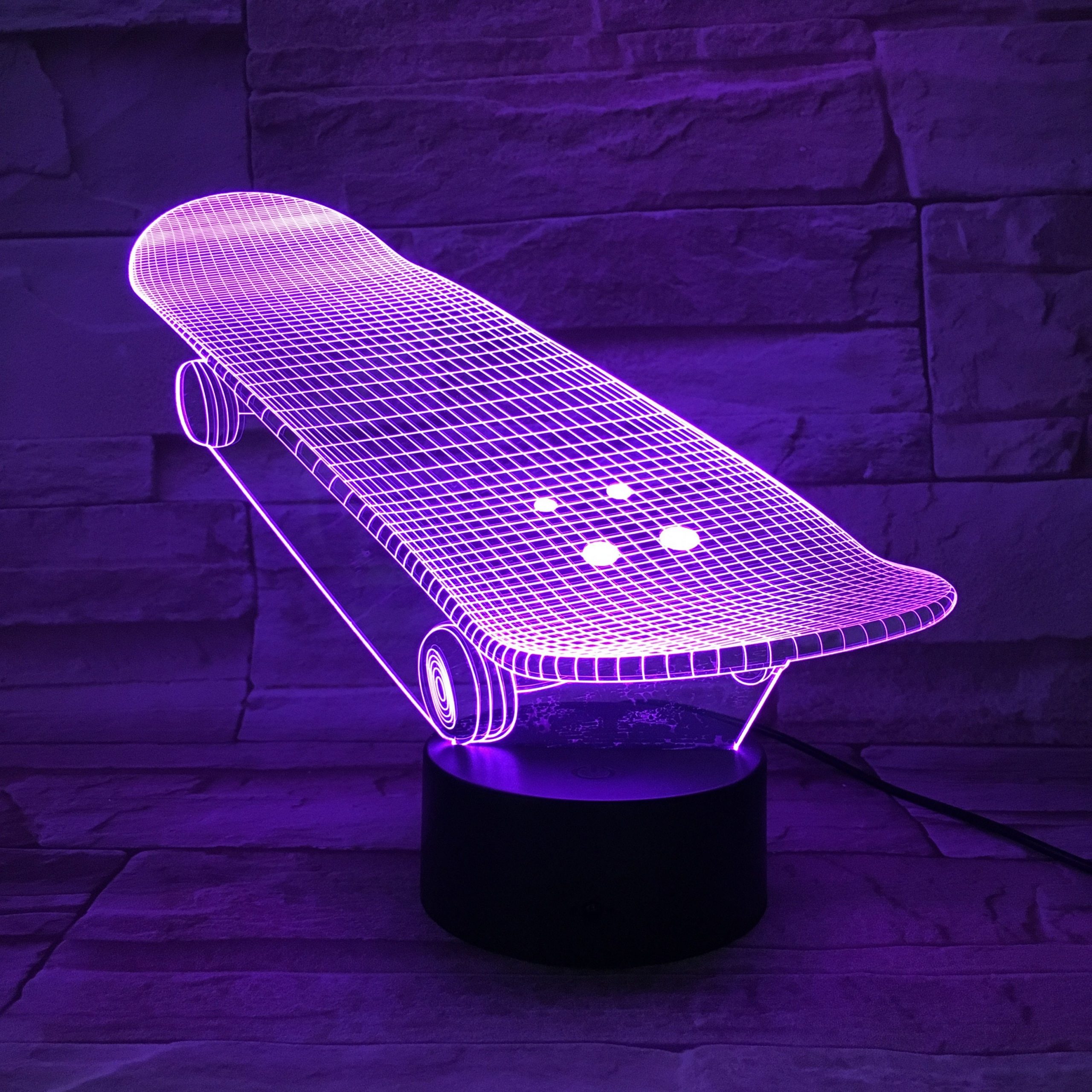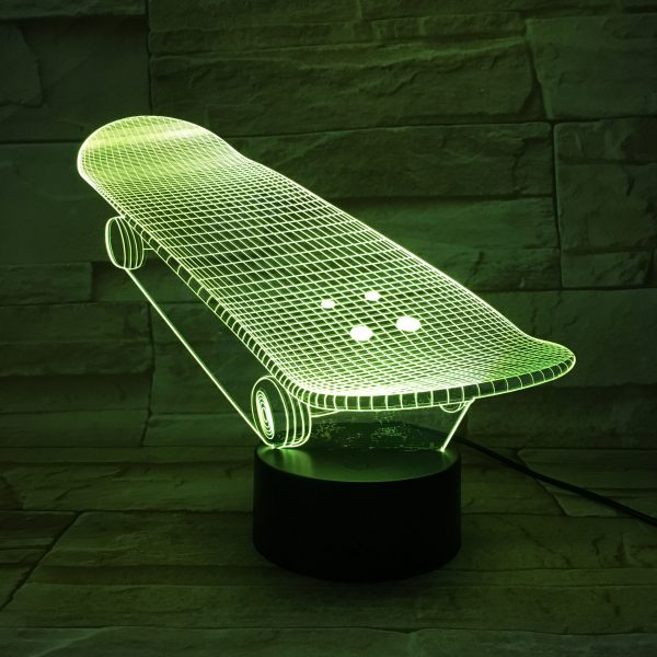 This Cool Skateboard 3D LED Illusion Night Light Lamp makes an excellent gift for kids, friends, and family (Including yourself)! It can be used as a cool night light for kids, or a unique decor for your bedroom, living room, or office. With the use of a laser engraved acrylic piece and bright LED lights, a stunning optical 3D illusion is created right before your eyes!