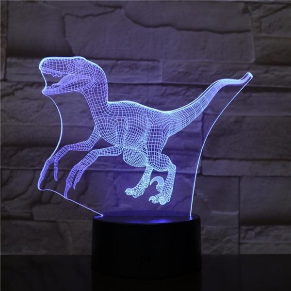 This Raptor Dinosaur 3D LED Illusion Night Light Lamp makes an excellent gift for kids, friends, and family (Including yourself)! It can be used as a cool night light for kids, or a unique decor for your bedroom, living room, or office. With the use of a laser engraved acrylic piece and bright LED lights, a stunning optical 3D illusion is created right before your eyes!
