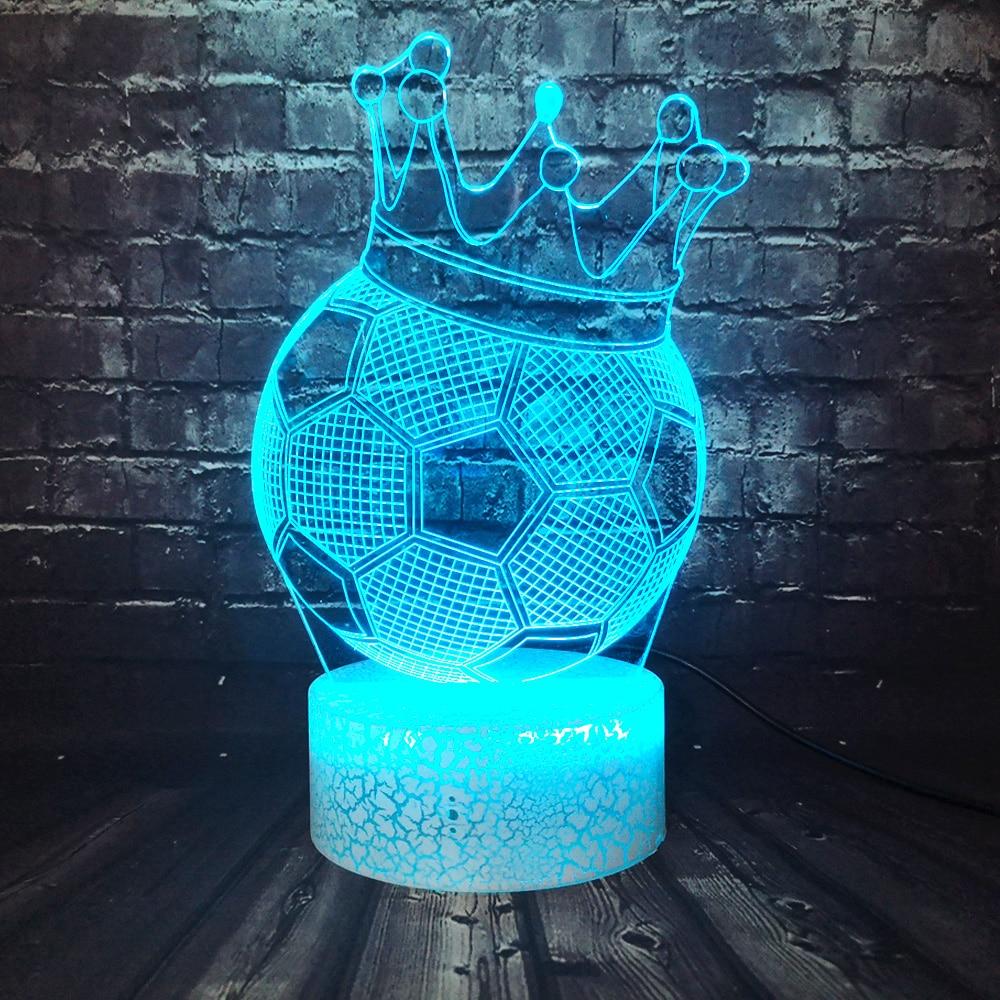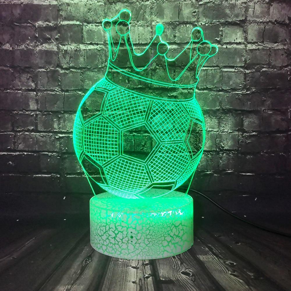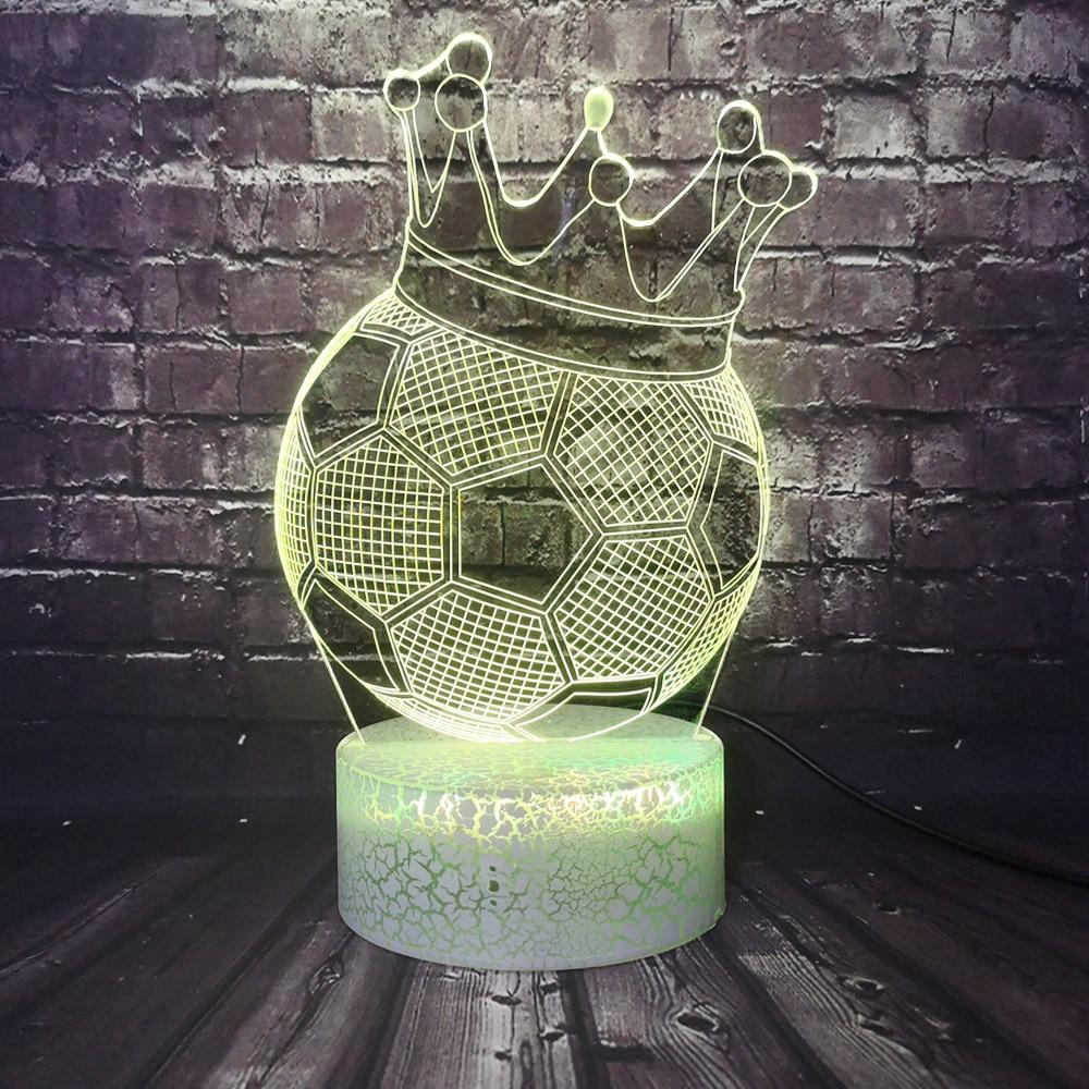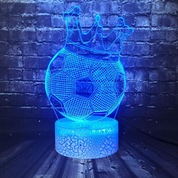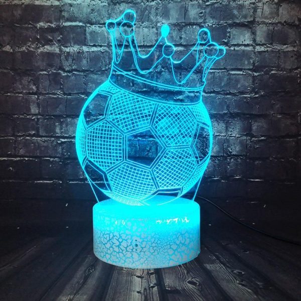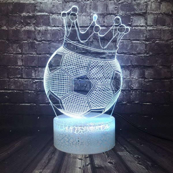 This Soccer Crown 3D LED Illusion Night Light Lamp makes an excellent gift for kids, friends, and family (Including yourself)! It can be used as a cool night light for kids, or a unique decor for your bedroom, living room, or office. With the use of a laser engraved acrylic piece and bright LED lights, a stunning optical 3D illusion is created right before your eyes!