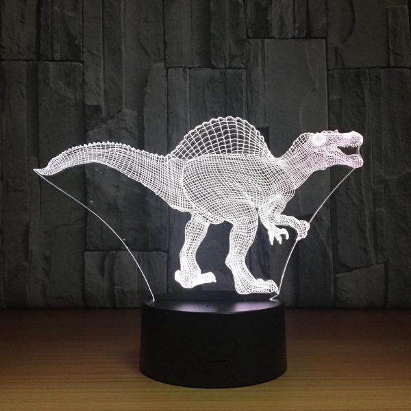 This Spinosaurus Dinosaur 3D LED Illusion Night Light Lamp makes an excellent gift for kids, friends, and family (Including yourself)! It can be used as a cool night light for kids, or a unique decor for your bedroom, living room, or office. With the use of a laser engraved acrylic piece and bright LED lights, a stunning optical 3D illusion is created right before your eyes!