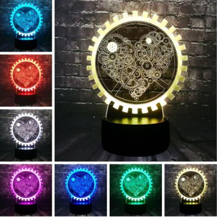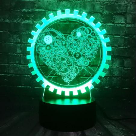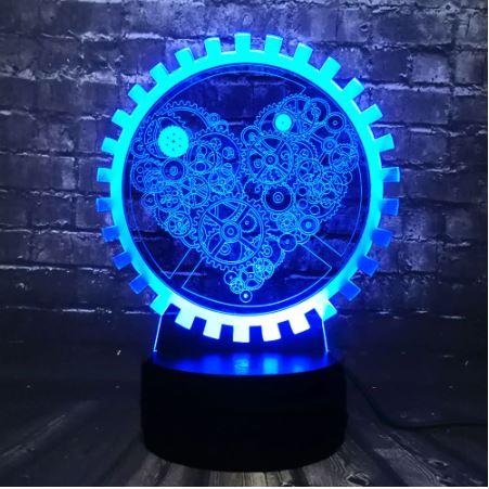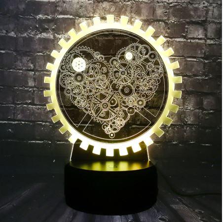 This Steampunk Heart 3D LED Illusion Night Light Lamp makes an excellent gift for kids, friends, and family (Including yourself)! It can be used as a cool night light for kids, or a unique decor for your bedroom, living room, or office. With the use of a laser engraved acrylic piece and bright LED lights, a stunning optical 3D illusion is created right before your eyes!