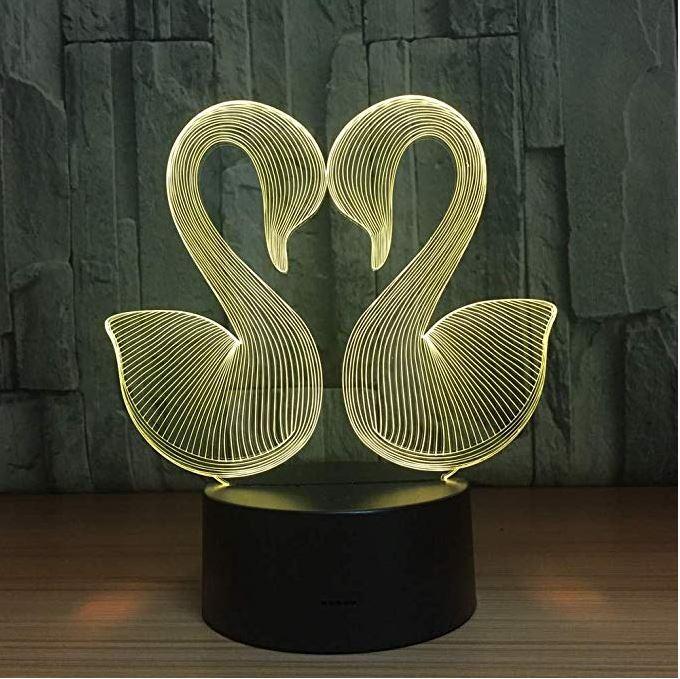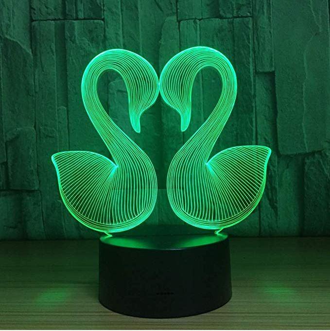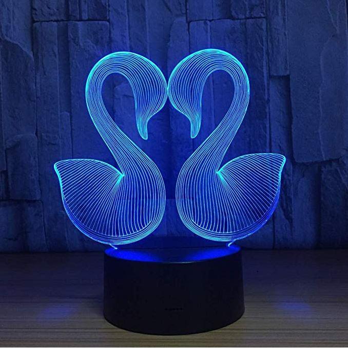 This Swans With Heart 3D LED Illusion Night Light Lamp makes an excellent gift for you and your loved ones. You can use it as a night light or even a unique decor for your bedroom, living room, or office. With the use of a laser engraved acrylic piece and bright LED lights, a stunning optical 3D illusion is created right before your eyes!