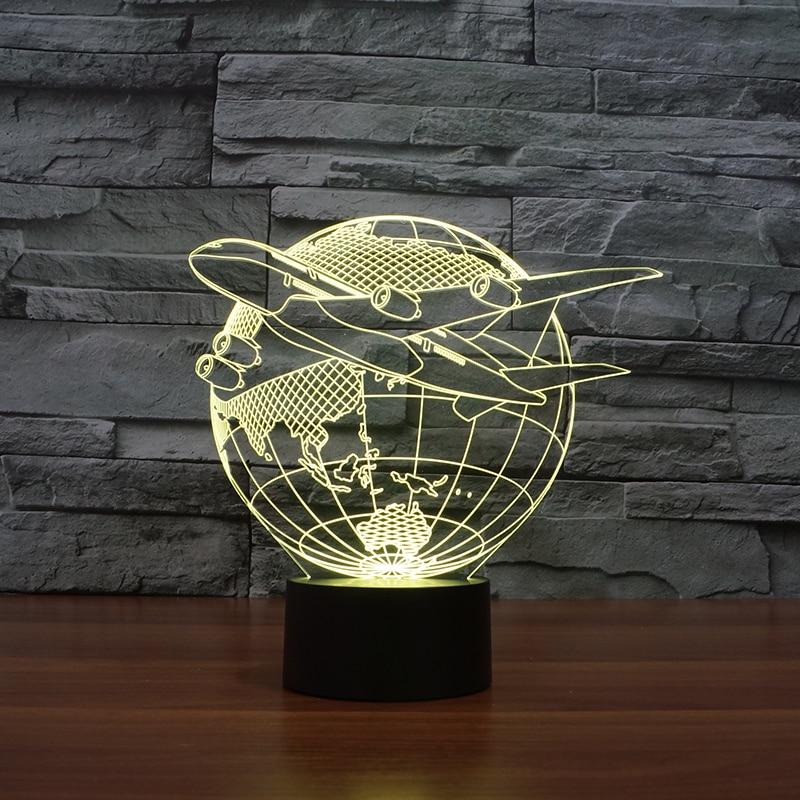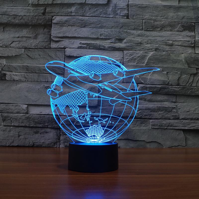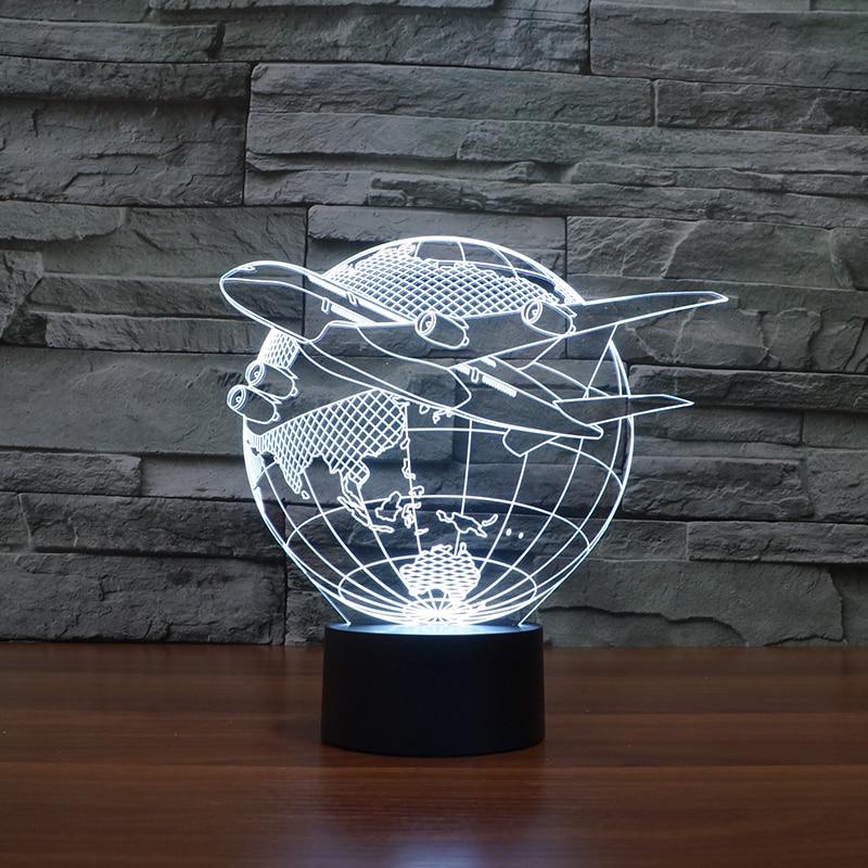 This Travel Plane Illusion Night Light Lamp makes an excellent gift for kids, friends, and family (Including yourself)! It can be used as a cool night light for kids, or a unique decor for your bedroom, living room, or office. With the use of a laser engraved acrylic piece and bright LED lights, a stunning optical 3D illusion is created right before your eyes!